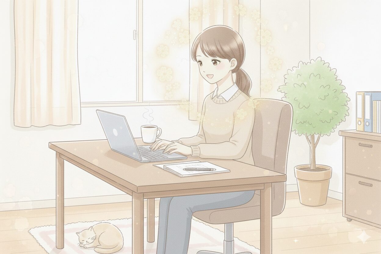 しかし、そんな無理な頑張りは長くは続きませんでした。 挫折を経て、私がようやく見つけた「自分らしい働き方の答え」が、今の在宅ワークというスタイルでした。